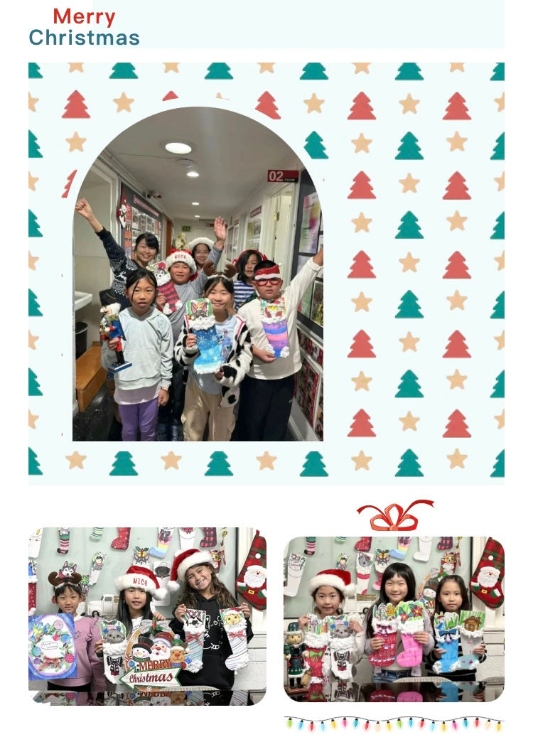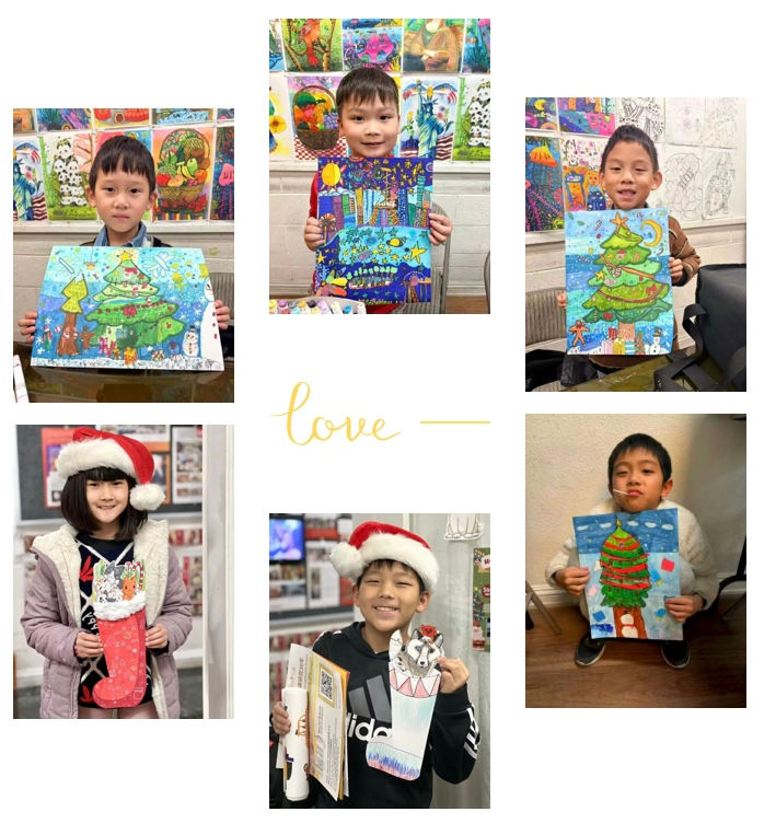 At different ages, children perceive life differently. They progress daily, with their observation skills, visual thinking, memory, imagination, expressive ability, and drawing techniques all steadily improving. The diverse art forms provided in our classes add even more joyful learning experiences to their holiday creations.