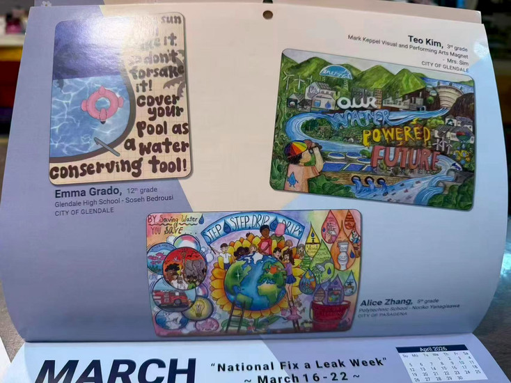 Another calendar-recognition achievement! Congratulations to WCAAD 13-year-old student Alice Zhang, whose water-saving artwork has been featured in the 2026 calendar jointly published by the Pasadena Water and Power Department and the Metropolitan Water District!